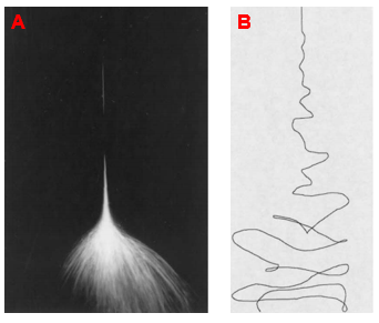 A) electrospun fiber under ordinary camera; B) electrospun fiber under high-speed camera